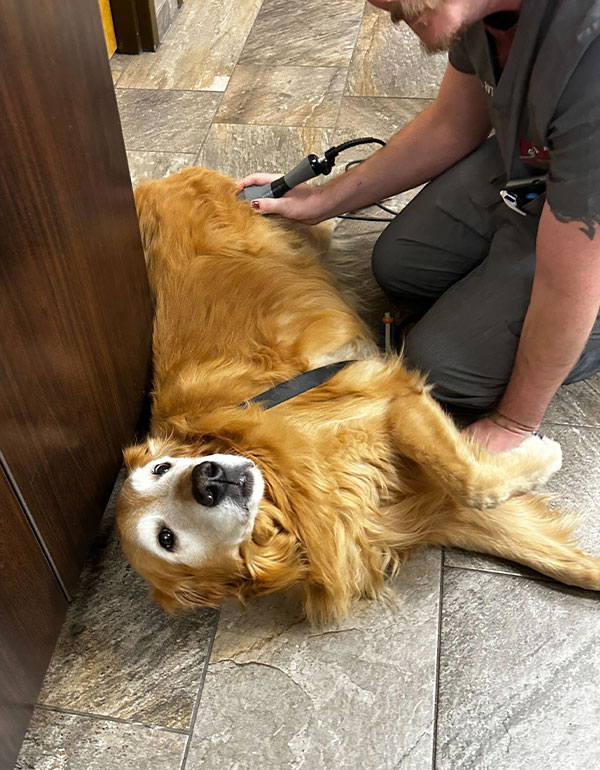 The Class IV Laser Therapy is completely painless, in fact, the gentle warmth it produces is often comforting and soothing to pets. Your pet will sit or lie comfortably during the procedure (with you if you prefer) while the technician administers the laser.